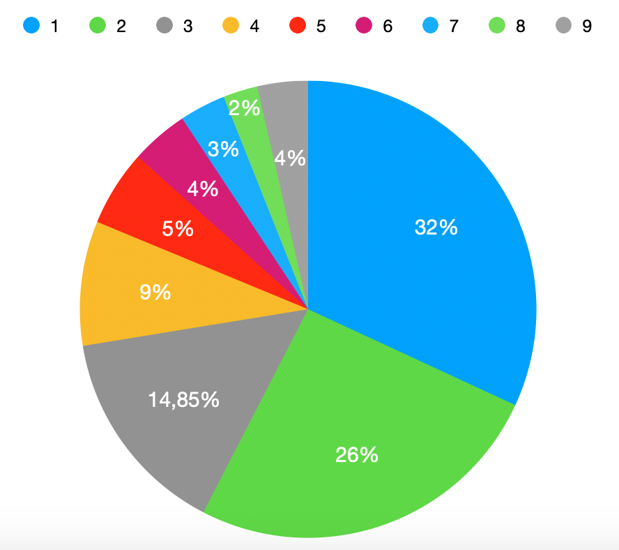 Le résultat peut paraître surprenant; pourquoi les premiers chiffres ne sont-ils apparemment pas équitablement répartis? Pourquoi y a-t-il beaucoup plus de prix commençant par un « 1 » que de prix commençant par un « 9 ». Si vous en avez le temps et l’envie, vous pouvez profiter d’une journée pluvieuse pour refaire la même expérience et vérifier que vous arrivez à peu près au même résultat.