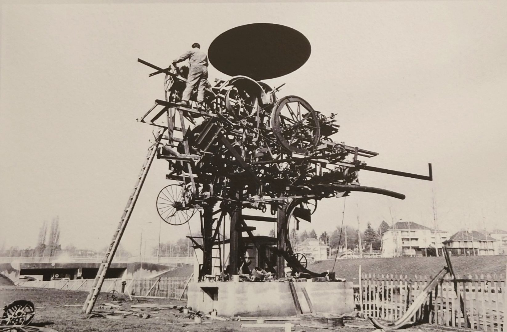 Jean Tinguely (1925-1991) était un sculpteur et peintre suisse, pionnier de l’art cinétique. Fasciné par le mouvement et la machine, il a passé sa vie à créer des sculptures animées, souvent à partir de matériaux de récupération : ferraille, roues, moteurs, objets du quotidien… Ma stupéfaction en face de Heureka, lors de l’Exposition Nationale Suisse de 1964, marqua mon premier contact avec son univers. Ce gigantesque assemblage de roues, moteurs et ferraille, animé par un chaos sonore et visuel fascinant, incarnait l’esprit créatif et ingénieux de l’artiste. À tel point que l’expression « Machine à Tinguely » est née à cette époque en Suisse romande. Hélas, Heureka n’est pas exposée au Musée Tinguely, elle trône aujourd’hui au Zürichhorn, au bord du lac de Zurich.