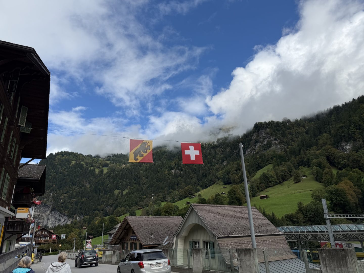 Bien décidés à ne pas rester sur un échec, nous décidons de retourner au Niederhorn au mois de septembre pour y manger à midi et nous réservons un logement à Interlaken après avoir à nouveau consulté la météo, mais une semaine avant, cette fois. Nous y allons en voiture, car nous partagerons un appartement avec une amie qui n’a pas l’abonnement général CFF. Le jour du départ, les prévisions météorologiques ont changé et ce sont trois jours de pluie qui nous semblent promis cette fois. En arrivant sur place, nous sommes distraitement passé devant un panneau avertissant d’un problème avec le télécabine. Nous montons dans le funiculaire et en arrivant à la station intermédiaire et nous réalisons alors que le télécabine est annoncé en panne jusqu’au mois de décembre 2025. Impossible de monter au Niederhorn et en plus le temps est bouché. Nous décidons alors de chercher un restaurant à Beatenberg et après 3 essais infructueux, nous comprenons que, hors saison, il n’y a plus grand chose d’ouvert.